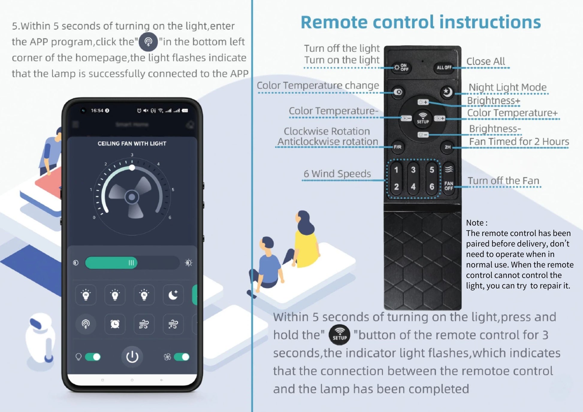 Remote & App Control: Conveniently adjust fan speed, lighting, and settings via remote control or smartphone app.